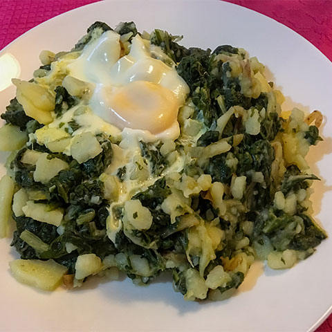 Una vez hecho los huevos emplatamos, Partiendo mucho las patatas y colocando un huevo por comensal