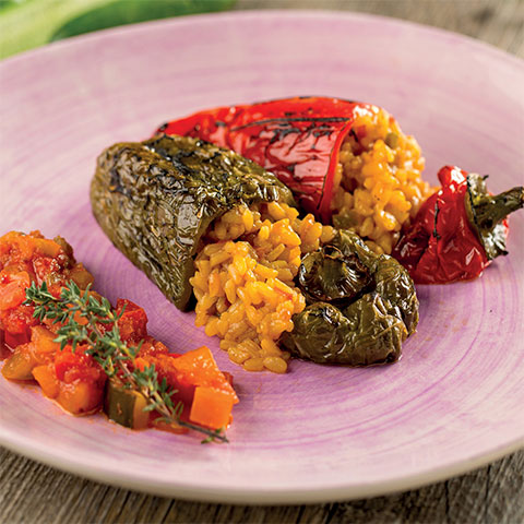 Para terminar, rellenamos los pimientos con el arroz y horneamos durante 5 min a 180 ºC