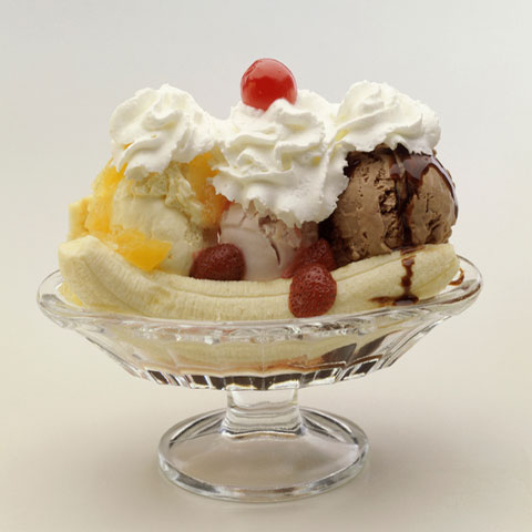 Encima de nuestra base ponemos una bola de helado de vainilla, fresa y chocolate