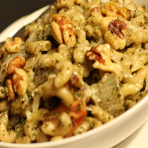 Emplatamos la pasta y por encima echamos la salsa y nueces sueltas