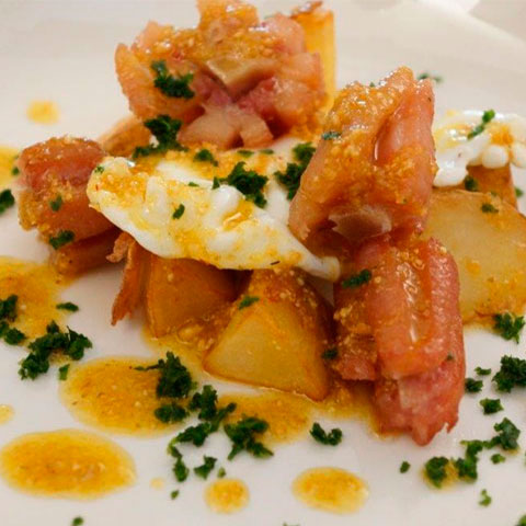 Ya emplatado hacemos una línea con reducción de Pedro Ximenez a modo de decoración