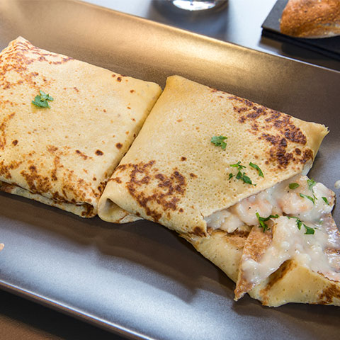 Emplatamos cada crepe colocando la cantidad de relleno con cuidado para que no se derrame. Nos aseguramos de doblar los extremos y ya lo tenemos