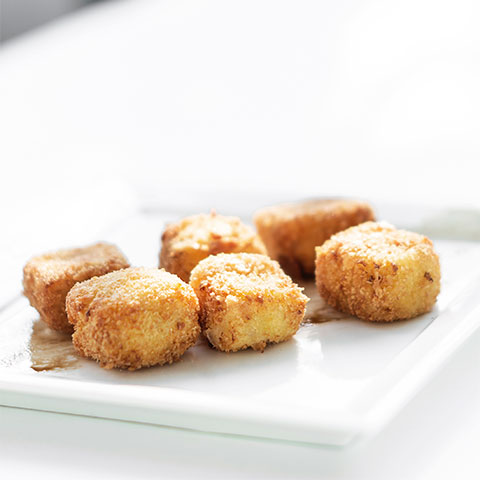 Cortamos en cuadrados y pasamos por harina, huevo y por último por pan rallado (nosotros hemos utilizado panko)