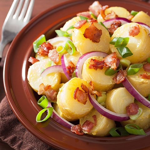Mezclamos y aliñamos con una cucharada de mostaza, una pizca de sal y un chorro de aceite de oliva.
