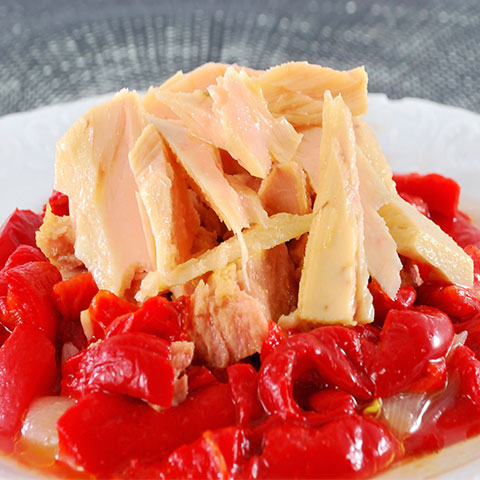 Colocamos los lomos de bonito (también podemos utilizar migas de bonito)
