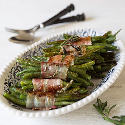 Cogemos unos cuantos tallos partidos y los envolvemos en media loncha de Bacon