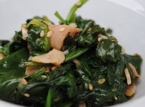 Añade las espinacas, que estarán cocidas previamente y dales vueltas con la ayuda de dos cucharas.