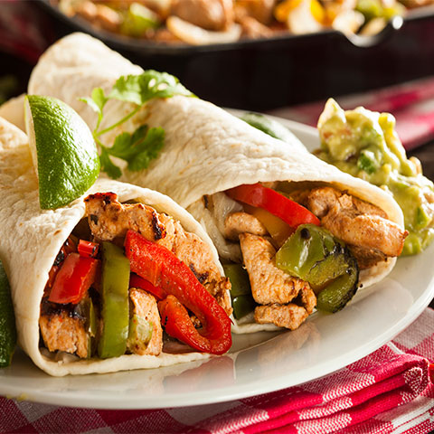 Montamos las fajitas, calentamos cada tortita y ponemos un poco de cada ingrediente