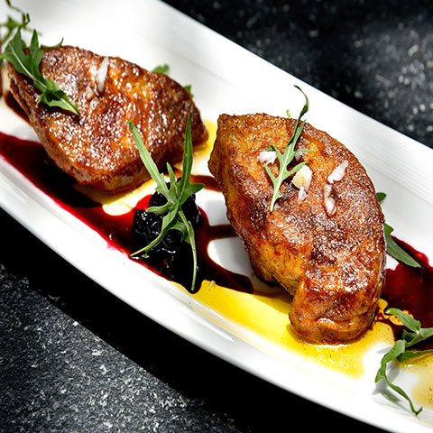 Antes de servir decoramos con la crema balsámica de frutos rojos sin ponerla por encima del foie