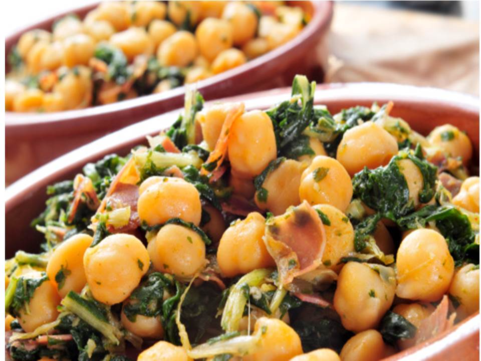 Añade los garbanzos para que cojan sabor y se calienten, remueve de vez en cuando. Mientras, pon otra sartén al fuego sin aceite, solo para dorar los piñones.
