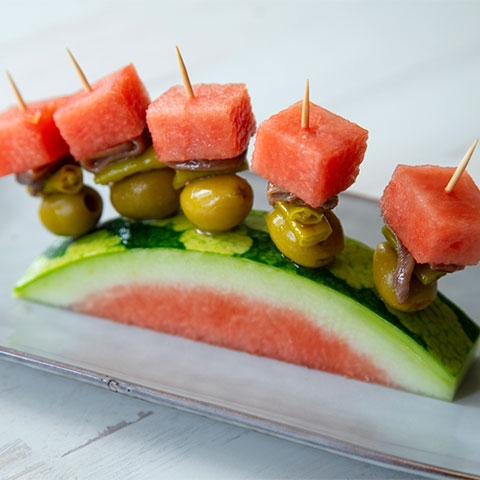 Colocamos la aceituna que será la base de nuestra jilda de verano