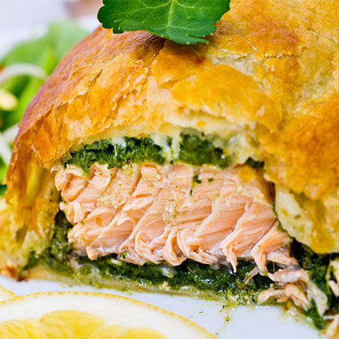 Ponemos el salmón encima que se terminará de hacer en el horno