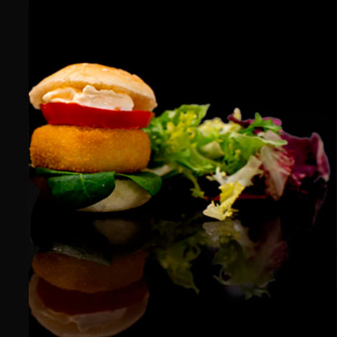 Colocamos cada hamburguesita en su pan y ponemos una rodaja de tomate natural y un poco de salsa alioli