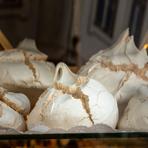 Con la ayuda de dos cucharas vamos colocando nuestros merengues sobre el papel engrasado