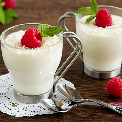 Una vez estén cuajadas esparcimos el coco rallado en cada una y colocamos algún fruto rojo.