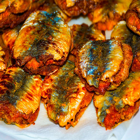 Enroscamos una loncha de jamón serrano que sea fina y la pinchamos a continuación