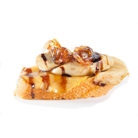 Colocamos los escalopines sobre el queso y cubrimos con las cebolla caramelizada