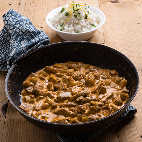 Nosotros lo hemos acompañado con arroz blanco aderezado con cebollino