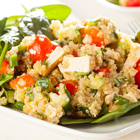 Agregamos a la quinoa el aceite, el vinagre y salpimentamos al gusto