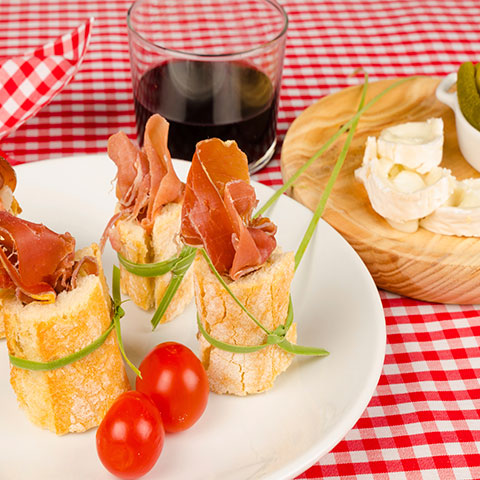 Servimos acompañado con una tabla con queso brie cortado y pepinillos