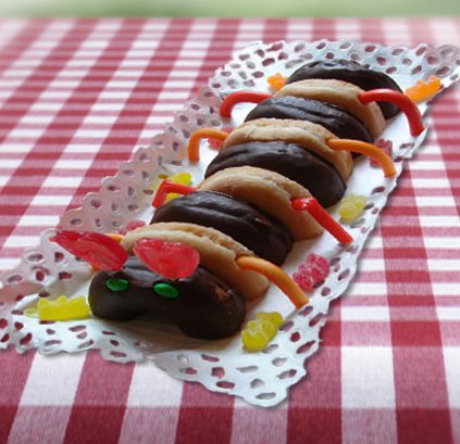 Colocamos las piruletas en este mismo primer donut para que nuestro singular gusano tenga antenas
