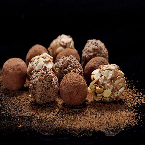 Emplatamos las trufas variadas en una fuentecita y ¡deleitamos a los comensales!