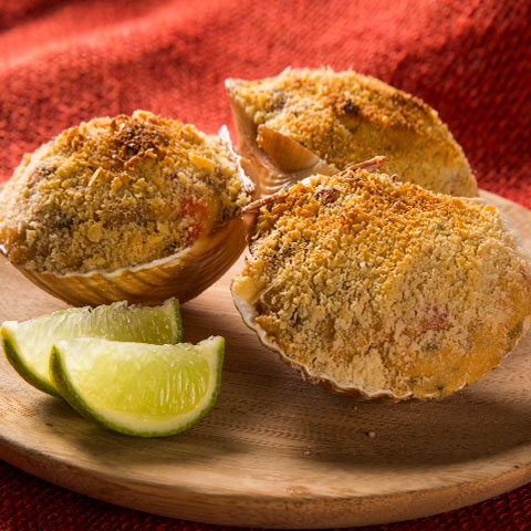 Lo volcamos sobre las vieiras y gratinamos unos minutos, controlando que no se doren demasiado